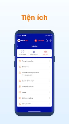 Tưởng tượng việc quản lý điện năng của gia đình hoặc doanh nghiệp trở nên thật dễ dàng và minh bạch. Ứng dụng đột phá này sẽ biến điều đó thành hiện thực, mang đến cho bạn quyền kiểm soát tối ưu ngay trên thiết bị di động. Nền tảng thông minh này chủ động gửi đến bạn các thông báo quan trọng về kỳ hạn thanh toán, lịch cắt điện định kỳ, hay cả những sự cố mất điện không mong muốn, giúp bạn luôn được cập nhật và chủ động sắp xếp mọi việc mà không lo bị gián đoạn.