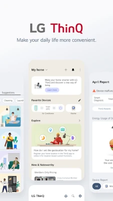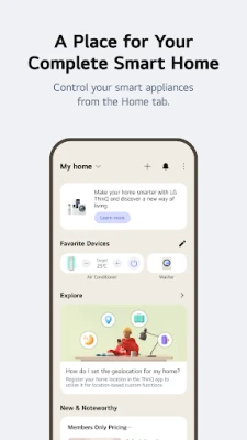 Tưởng tượng một ngôi nhà nơi mọi thiết bị hoạt động hài hòa, đáp ứng mọi nhu cầu của bạn, tất cả được quản lý dễ dàng trong tầm tay. LG ThinQ chính là cầu nối biến tầm nhìn đó thành hiện thực. Ứng dụng này mang đến khả năng điều khiển thiết bị thông minh một cách mượt mà từ bất cứ đâu, cùng với sự chăm sóc tự động và tiện ích cá nhân hóa vượt trội. Tab Trang chủ trực quan giúp bạn dễ dàng quản lý toàn bộ hệ sinh thái IoT của mình, cung cấp các gợi ý thông minh dựa trên thói quen sử dụng, và khám phá những tính năng tiềm ẩn qua mục "Khám phá" đầy bổ ích để nâng cao trải nghiệm sống.